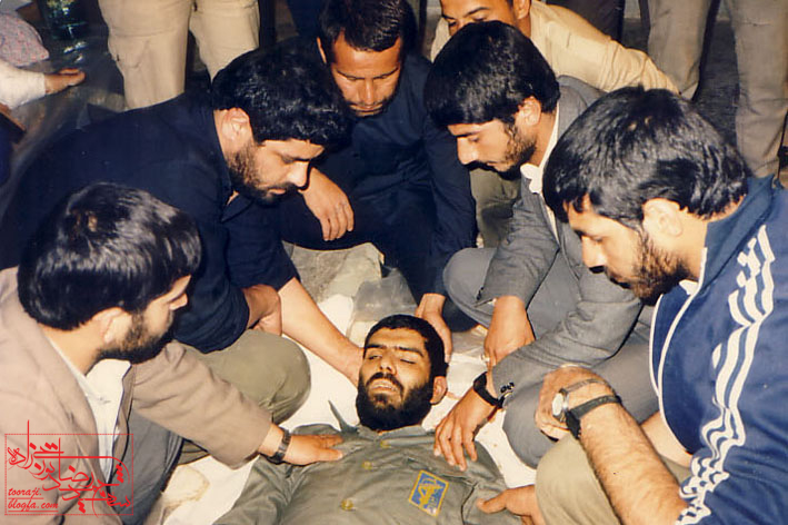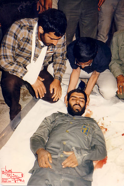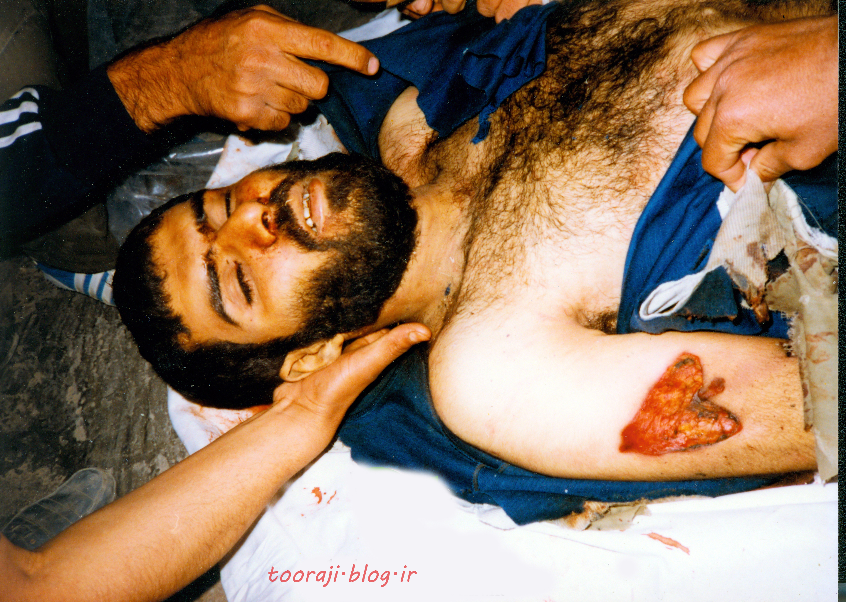 ترکش خمپاره به بازوی راست و قسمت چپ پهلو اصابت کرده بود . طبق وصیت لباسهای او را عوض کردیم .