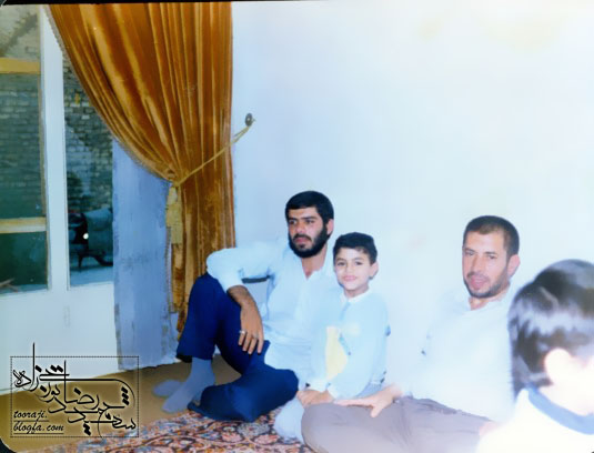 برگشتیم خانه. محمد رفت داخل انباری. تکه لوله ای را برداشت. آمد داخل اتاق نشست روی صندلی. لوله را جلوی دهانش گرفته بود و مداحی می کرد!
